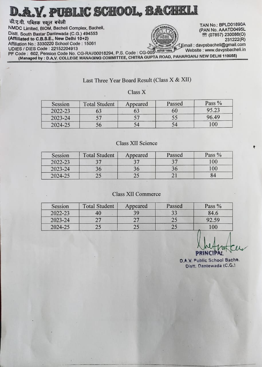 LAST THREE-YEAR RESULT OF THE BOARD EXAMINATION AS PER APPLICABLILITY